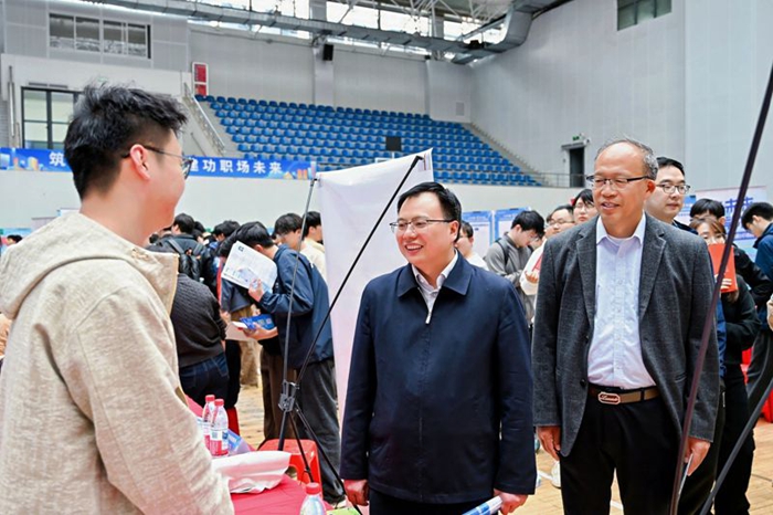 为深切贯彻落实省委省“人才兴皖”计谋摆设,精准对接住房城乡扶植行业人才需求取高校结业生就业需求,4月8日,由省住房和城乡扶植厅、省教育厅结合从办,安徽建建大学承办的“人才兴皖、‘就’正在江淮”安徽省住房城乡扶植行业2026届高校结业生春季专场聘请会正在紫云校区体育馆成功举行。省住房和城乡扶植厅党组、副厅长尹军,省大中专结业生就业指点核心从任张秋田,校党委马,党委副李早,党委常委、副校长杨科,党委常委、副校长王佐才亲临现场指点。